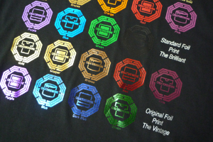 濃色・淡色生地にプリントでき、箔(フォイル)は美しい仕上りです。